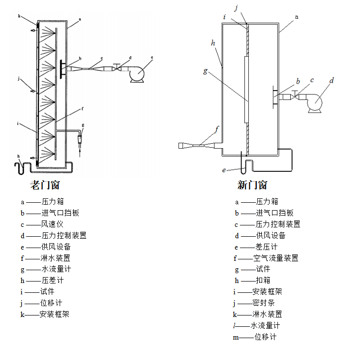 態下通過扣箱測量試件的空氣滲透量;水密性能檢測在穩定壓差或波動壓差作用時向試件室外側淋水,測定試件不發生滲漏